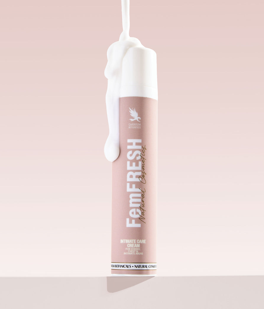 Krem intymny FemFRESH to kompleksowe rozwiązanie dla nowoczesnej kobiety – delikatne, skuteczne i w pełni dopasowane do potrzeb wrażliwej skóry okolic intymnych. Wspiera naturalną równowagę, łagodzi podrażnienia i zapewnia długotrwałą świeżość – gdziekolwiek jesteś, o każdej porze. Został opracowany specjalnie do pielęgnacji zewnętrznych okolic intymnych, które każdego dnia narażone są na tarcie, golenie, pot, obcisłą odzież oraz zmiany hormonalne. Połączenie aloesu, kwasu hialuronowego, kwasu mlekowego, D-pantenolu i naturalnych olejów delikatnie nawilża skórę, koi ją po goleniu lub stosunku oraz pomaga zapobiegać uczuciu ściągnięcia, suchości i nieprzyjemnemu zapachowi. Formuła nie zawiera substancji zapachowych, barwników ani innych drażniących składników, dlatego doskonale nadaje się również do bardzo wrażliwej skóry i codziennego stosowania – także podczas menstruacji, po stosunku czy w okresie menopauzy. FemFRESH to niezawodne wsparcie Twojej intymnej pielęgnacji, ponieważ: