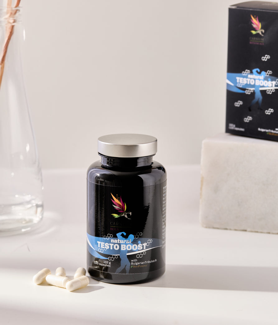 Testo Boost został starannie opracowany, aby wspierać męską witalność. Zawiera kwas D-asparaginowy, który pomaga naturalnie zwiększyć poziom hormonu T., oraz ekstrakty ziołowe, takie jak pokrzywa zwyczajna, czerwony żeń-szeń i buzdyganek naziemny, wspierające równowagę hormonalną i wydolność fizyczną. Witaminy i minerały, takie jak magnez, cynk, witamina B6 i D3, przyczyniają się do redukcji zmęczenia, prawidłowego funkcjonowania mięśni i regeneracji.