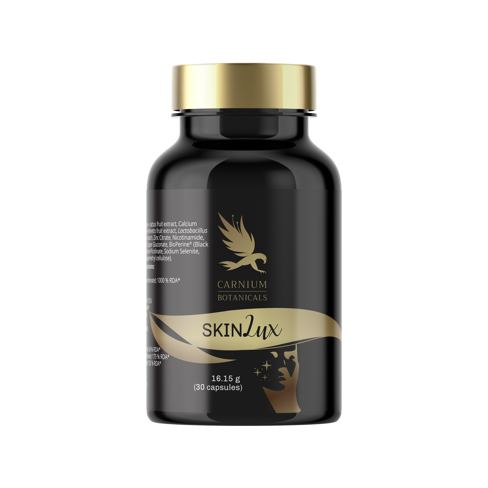 Skin Lux to suplement diety opracowany dla osób, które chcą zmniejszyć trądzik, wypryski i poprawić ogólny stan zdrowia skóry. Bogaty w cynk, biotynę i witaminę A, działa od wewnątrz, pomagając regulować stany zapalne, poprawiając teksturę skóry i przyspieszając jej regenerację.